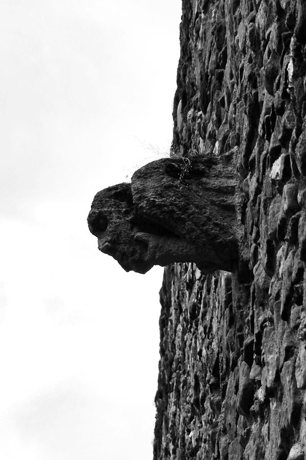 A deep thinking gargoyle at the ruins of Castle Rising Castle